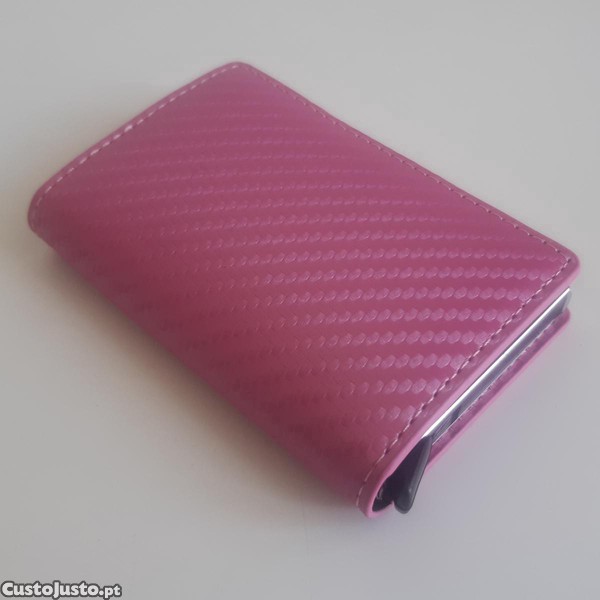 Preço: 4 €Pequena Carteira Porta Cartões Notas Alumínio Fibra Carbono Rosa