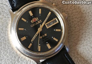Vendo relógio Orient Criytal automático, com caixa em aço dourada, data e dia da semana, mostrador negro, mede 35mm sem contar a coroa, bracelete em pele e bracelete em aço com detalhes dourados, nova, Orient. Está em bom estado e a funcionar bem.
