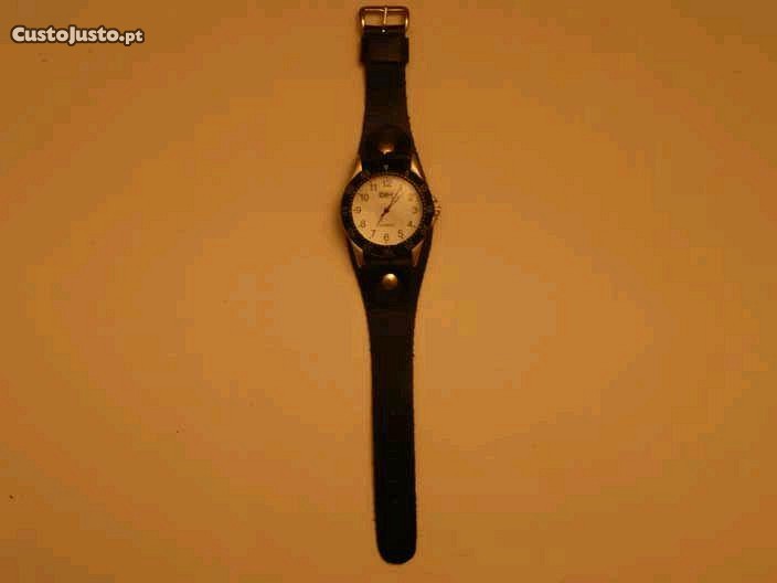 Relógio unisexo para crianças ou adolescentes da famosa marca de roupa Dim. De cor preta e com a caixa removível da pulseira de couro, ele está novo e a funcionar bem, nunca foi usado. Barato para desocupar. Negociável, vendo pela melhor oferta.