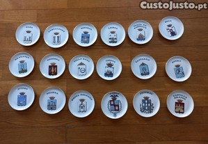 18 pratos com brasões das capitais de distrito da Loja das coleções.