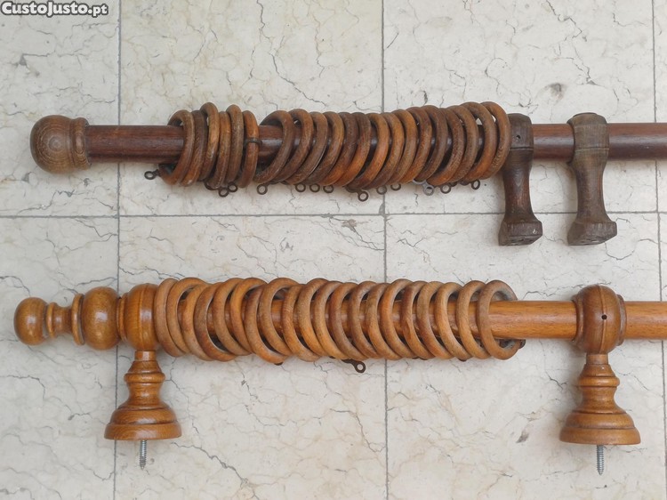 2 varões de madeira para cortinados