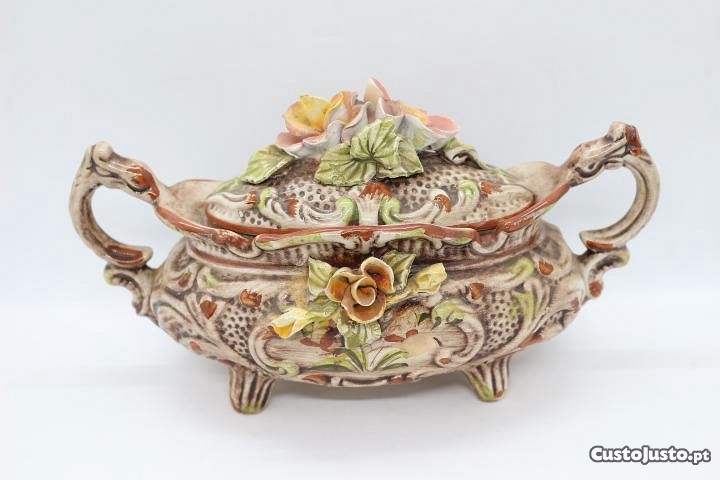 Antiga Terrina Porcelana Italiana Capodimonte marcada e numerada