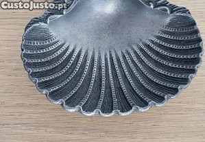 Vendo elegante peça decorativa em forma de concha (vieira), fabricada em metal maciço, provavelmente estanho. É uma peça clássica, robusta e com excelentes detalhes de acabamento, ideal para decoração de interiores ou para colecionadores.