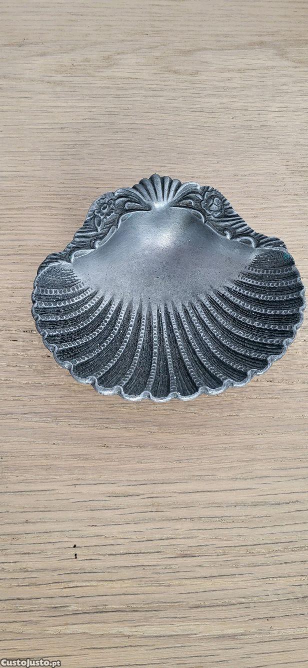 Antigo Prato de Decoração/Cinzeiro em Estanho Forma de Concha