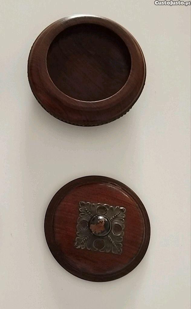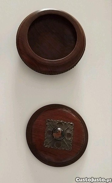 caixa em Pau Santo com aplicação em prata, em excelente estado, com 10 cm de diâmetro