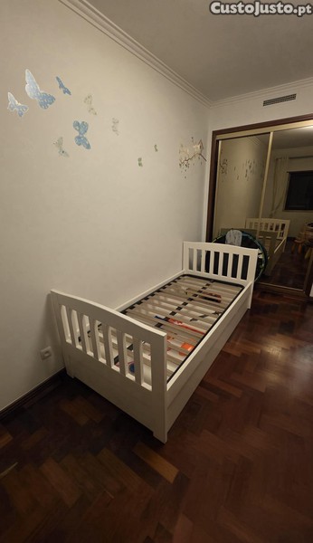Vendo cama individual 90×200, em madeira maciça, de elevada qualidade (loja Oficina Rústica), em excelente estado.