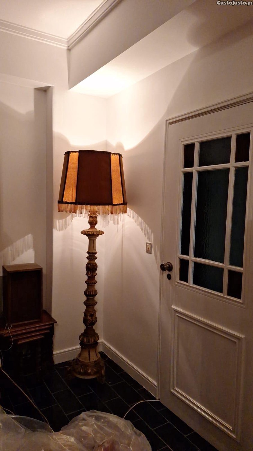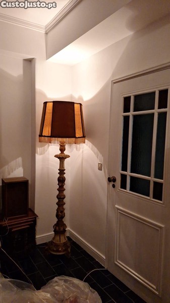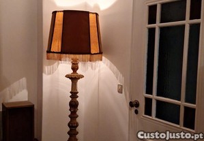 Candeeiro antigo em madeira com abatjour antigo