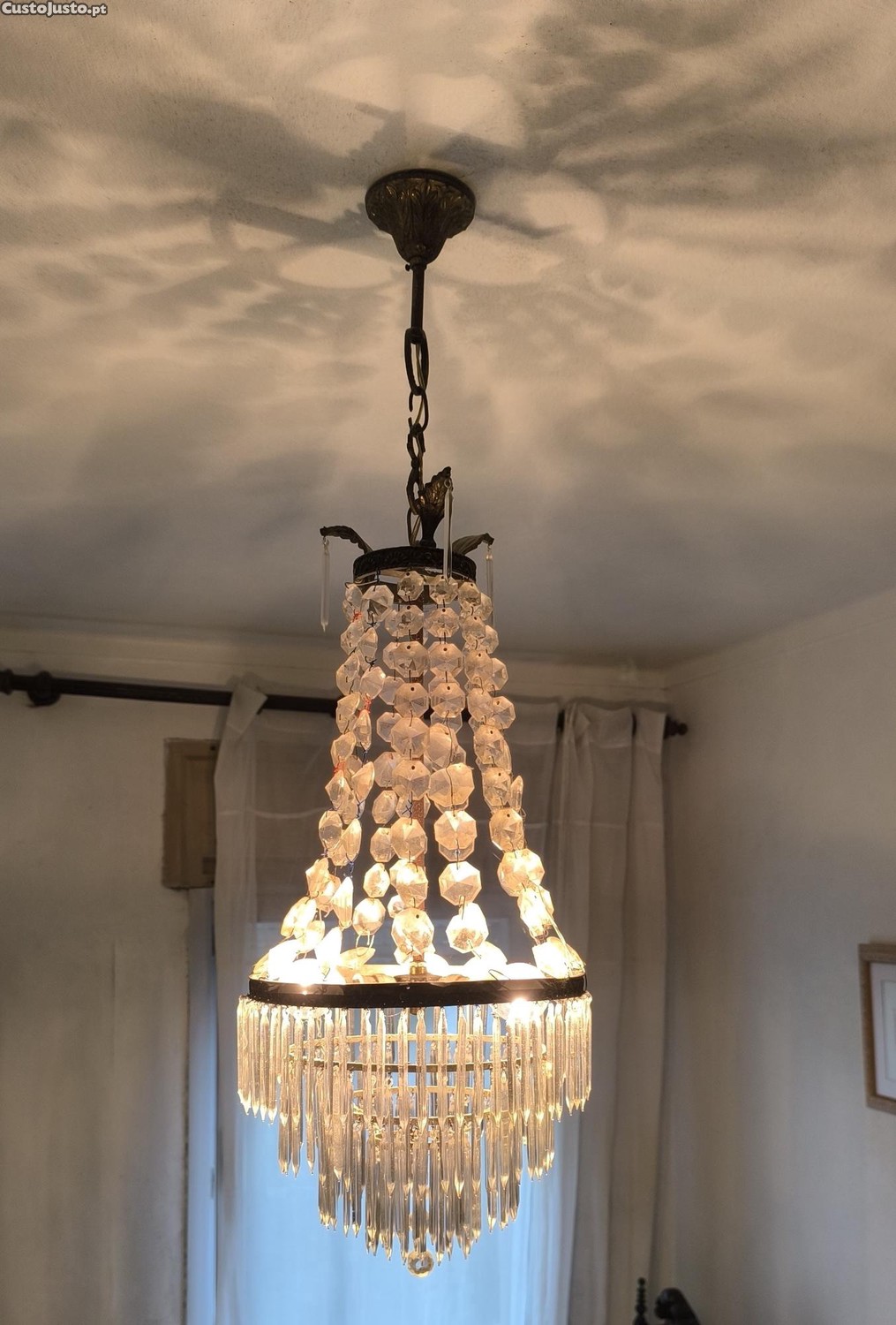 Esta elegante luminária de teto com pingentes de cristal é o complemento perfeito para o seu quarto. Projetada com um design clássico e atemporal, a sua iluminação suave e acolhedora cria um ambiente acolhedor e aconchegante no seu espaço.