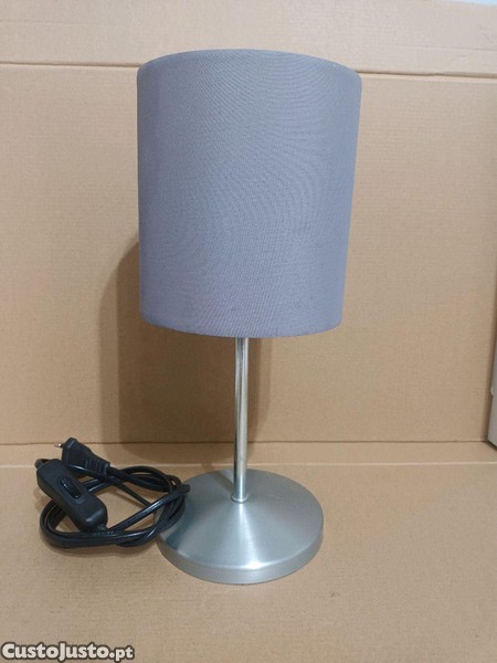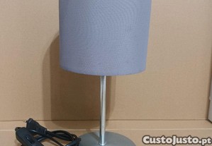 Candeeiro do Ikea modelo Ingared destinado a ser usado em mesas de cabeceira. Com abajur de tecido de cor cinzenta, pé de aço cromado escovado e base pintada também em cor cinzenta, é adequado para lâmpadas de rosca E14 ou de casquilho fino.Tem um cabo com 120 cm de comprimento, a base mede 13 cm de diâmetro, o abajur tem 14 cm de altura e 13 cm de diâmetro e o candeeiro tem no total de 30 cm de altura. Embora seja um modelo já descontinuado, encontra-se estimado e a funcionar bem. O abajur possui uma mancha muito ligeira que quase passa despercebida, como se pode ver numa das fotos. Barato para desocupar. Negociável, vendo pela melhor oferta. Possibilidade de vir buscar em mão.