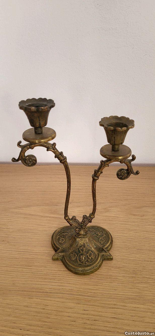 Castiçal Antigo em Latão de Dois Braços
