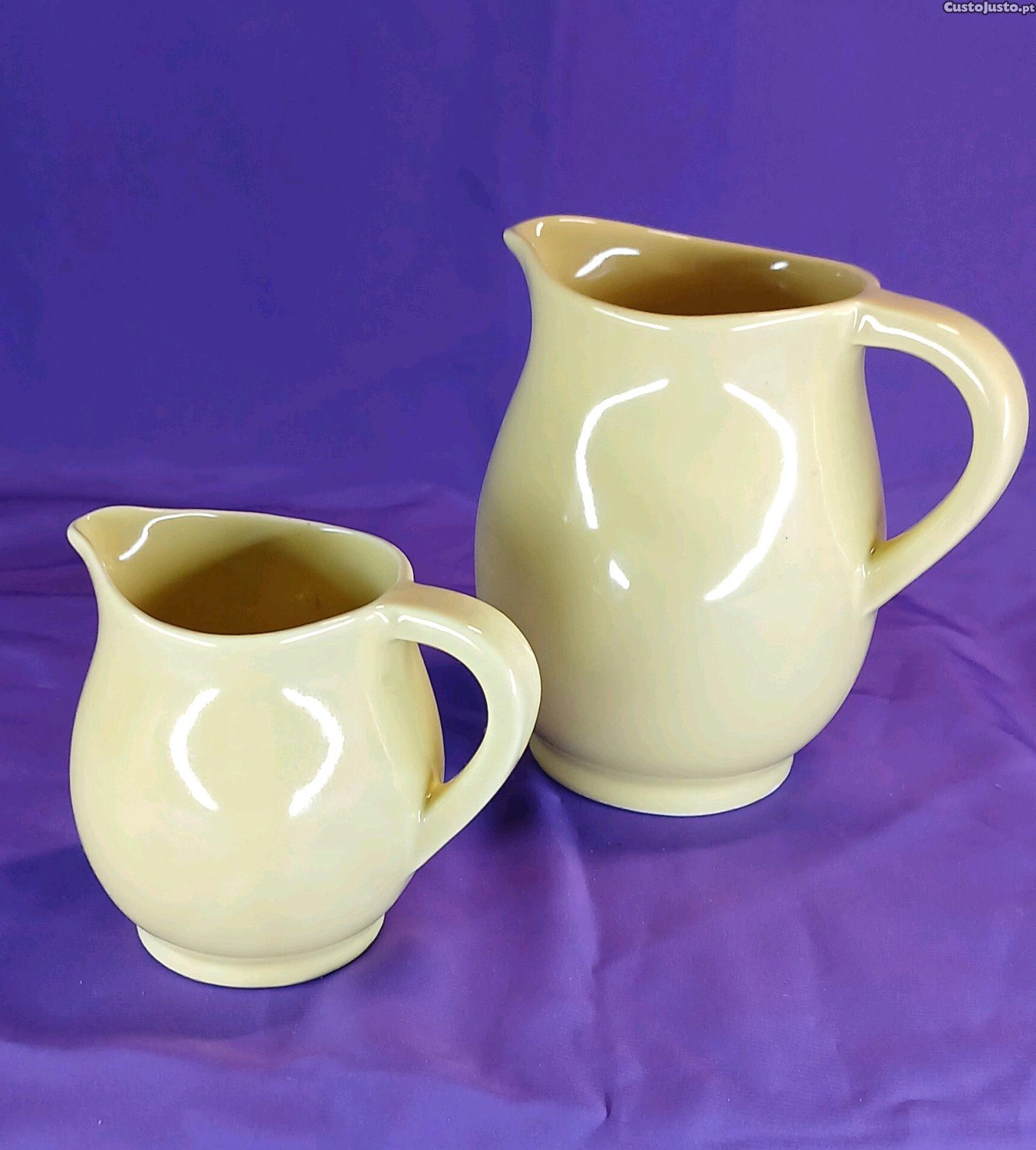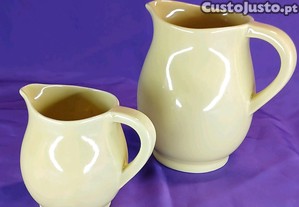 Conjunto de jarras cerâmicas de cor creme, com um design elegante e moderno. Estas peças podem ser usadas para servir água, leite ou outros líquidos, complementando perfeitamente o seu conjunto de loiça.