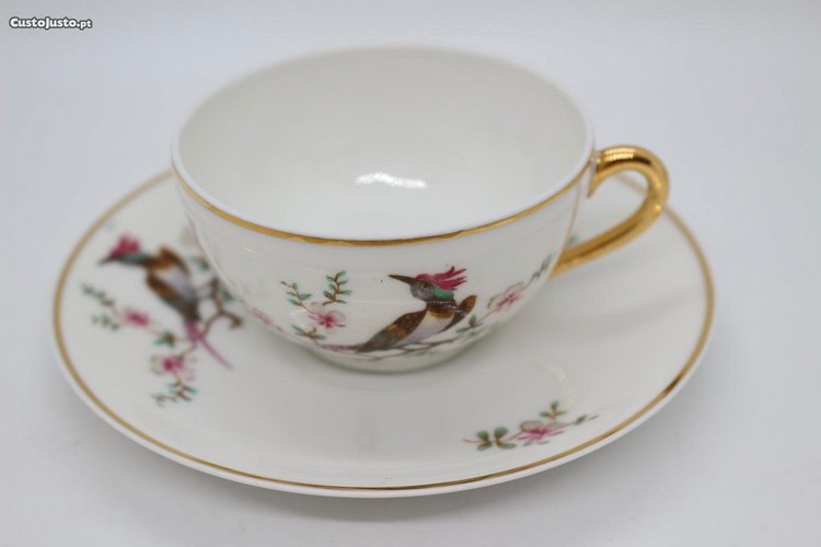 Chávena Café com pires Vista Alegre Pássaro Elementos a Ouro 1947