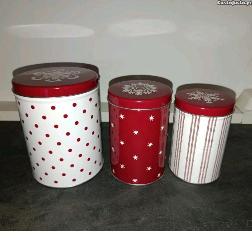 Conjunto de 3 latas vermelhas novas muito bonitas para armazenamento de produtos alimentares ou para decorar a cozinha