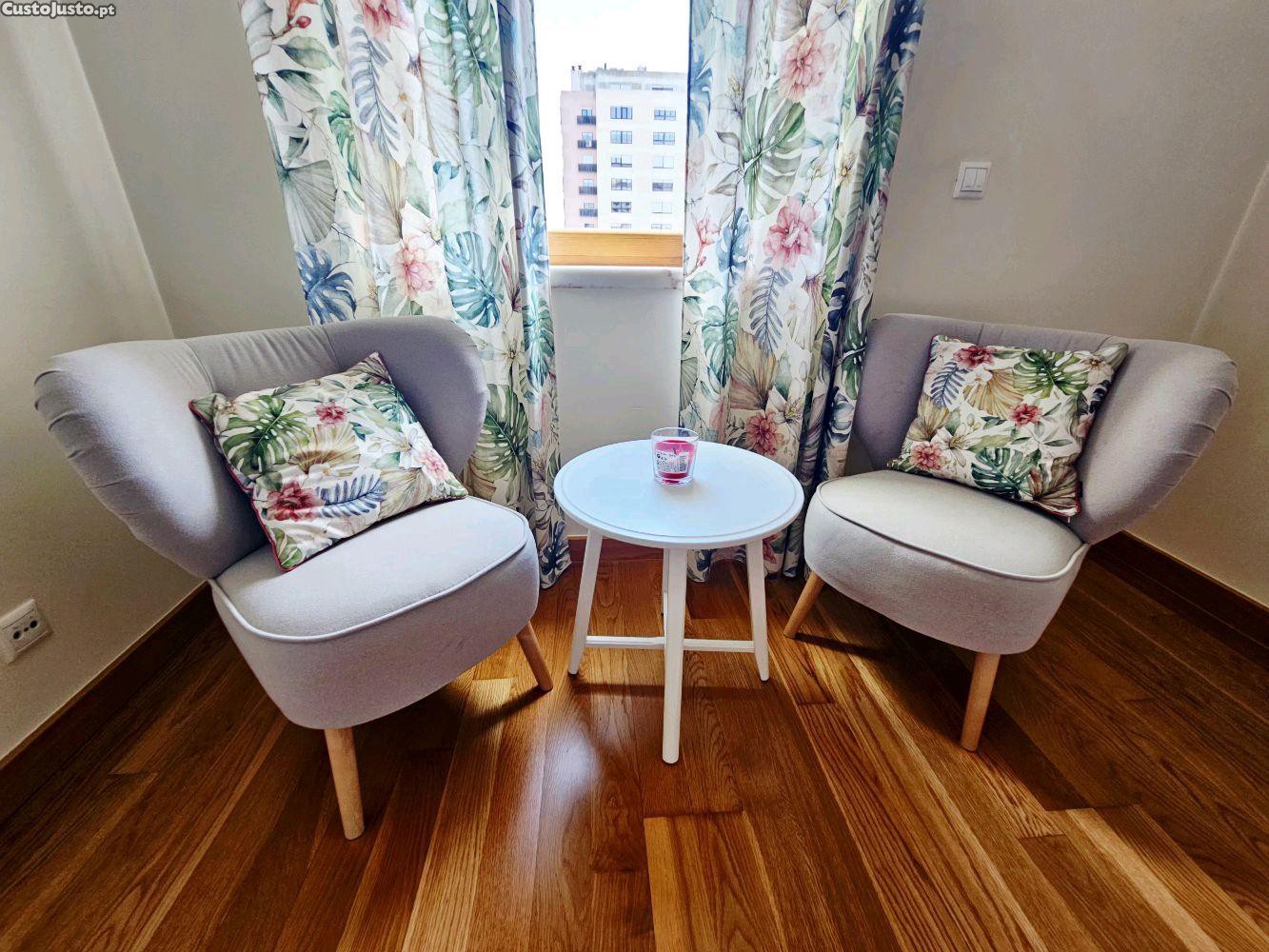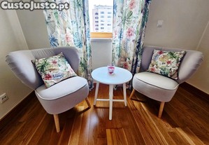 conjunto de duas poltronas e uma mesa de apoio