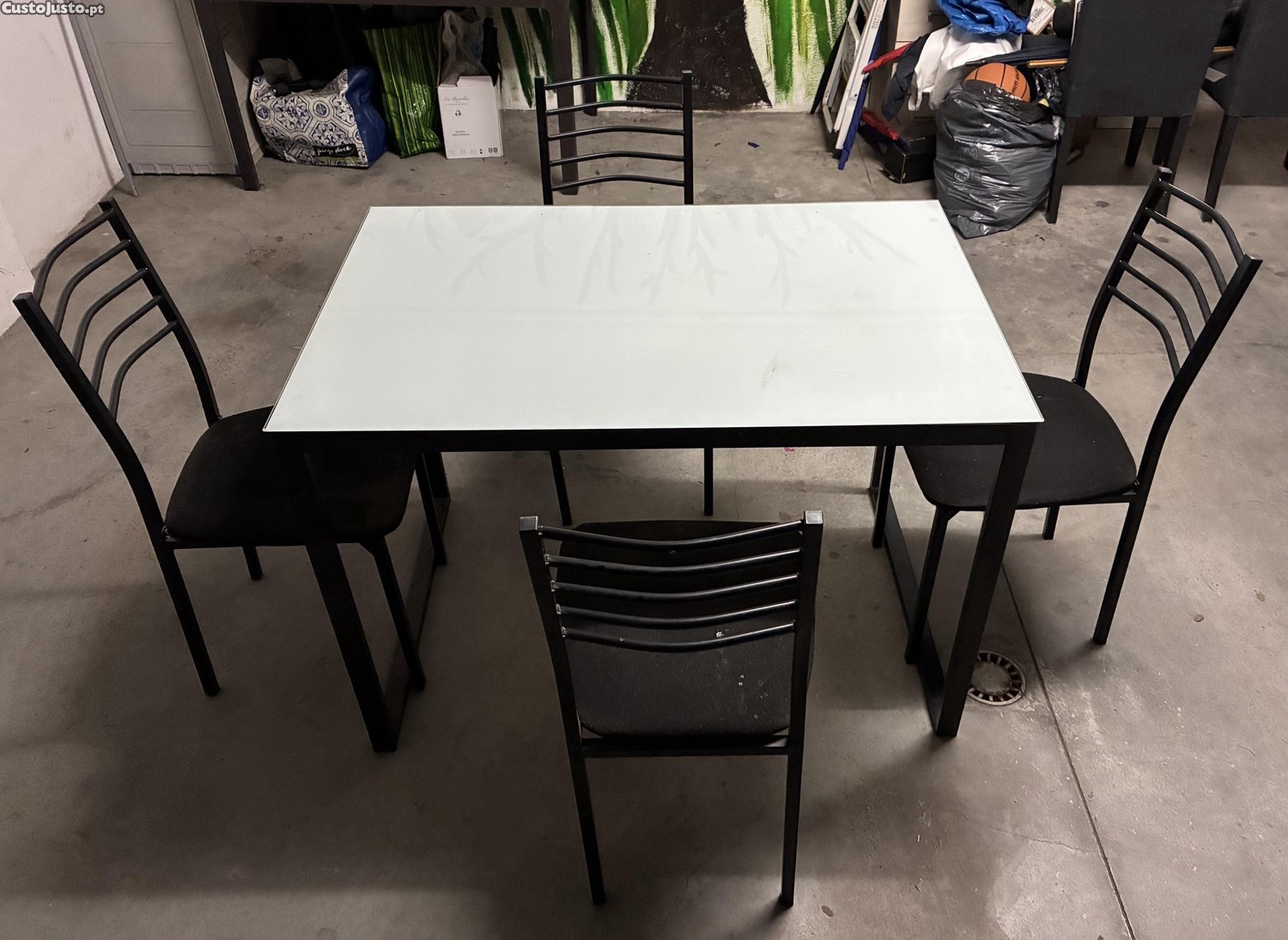 Preço: 75 €Conjunto de Mesa de Cozinha c/ tampo de vidro e 4 cadeiras