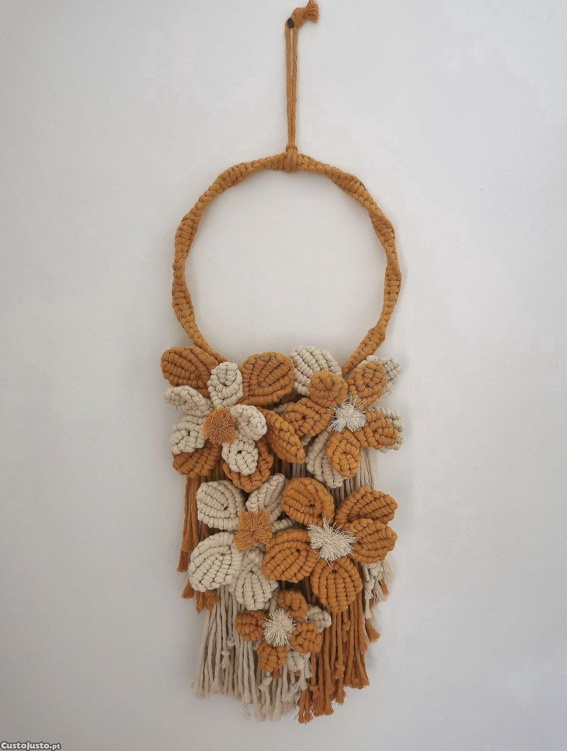 Preço: 45 €Decoração parede em macramê tons mostarda e creme