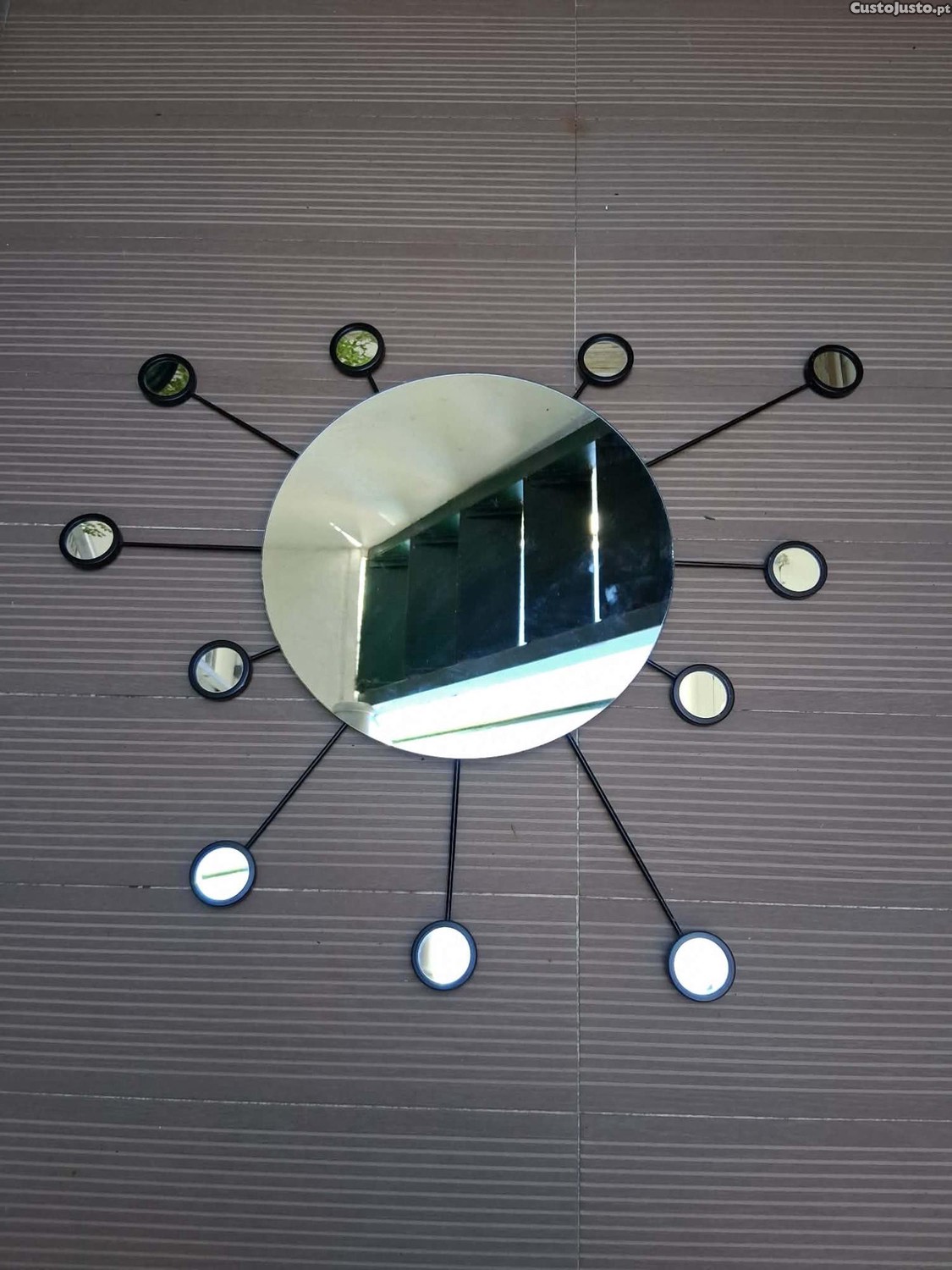 Vende-se espelho redondo com hastes metálicas com outros espelhos de pequenas dimensões.