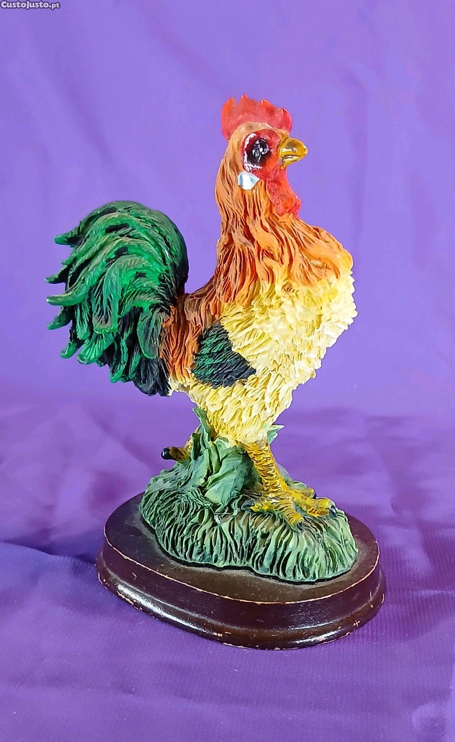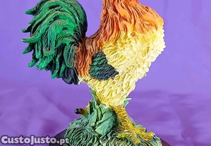 Elegante estatueta em resina representando um galo colorido. A peça destaca-se pelos detalhes realistas e pelas cores vivas, que lhe conferem um aspeto decorativo e atraente. Uma ótima opção para enriquecer a sua coleção ou decorar o seu espaço.