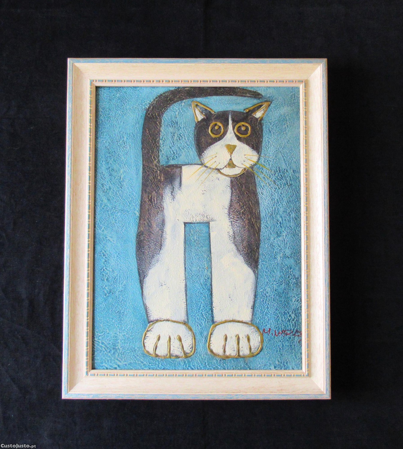 Gato, óleo sobre tela, assinado M. Varlzy(?). Moldura em madeira. Dim: 34,3x44,3 cm. O preço não inclui eventuais portes e não envio à cobrança.