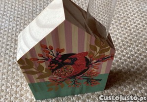 Jarra / solitário decorativa em formato de casinha de madeira com um lindo pássaro.