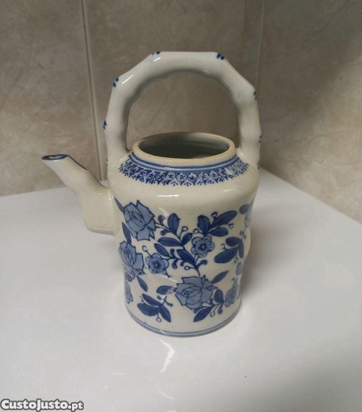 Jarra porcelana branca e azul