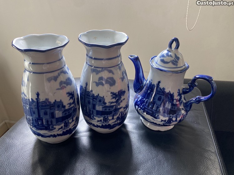 Preço: 50 €Jarras e bule decorativos em cerâmica azul e branca