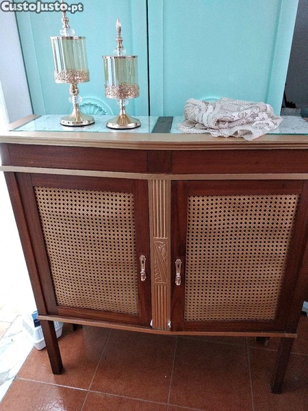 Móvel de madeira com cerca de 80 anos, todo recuperado, pintado e forrado por dentro e na parte superior tem vidros de proteção. Posso entregar na zona do Estoril e Cascais valor a acrescentar ao preço.