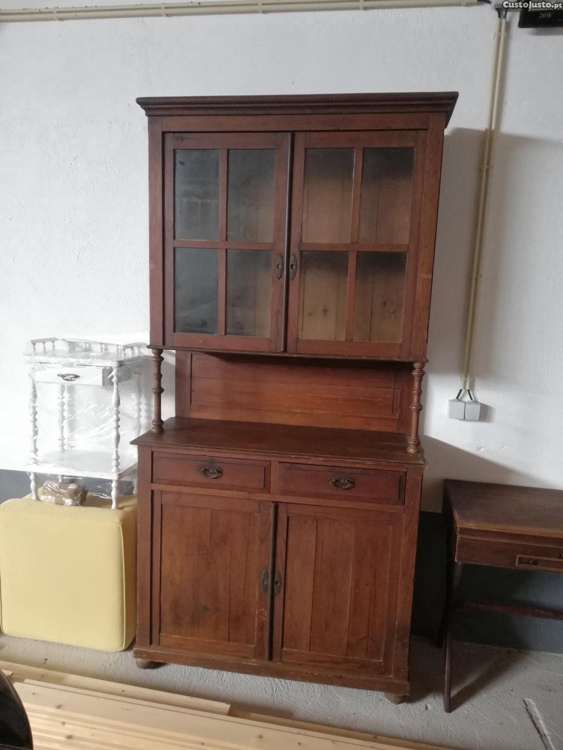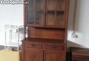 Móvel de madeira maciça. Muita arrumação. Vitrine em cima e aparador por baixo. 2 gavetas e 4 portas. L 114. P 47. A 228.
