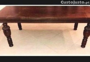 Mesa de Centro, formato retangular, em mogno maciço, tampo liso, pernas amovíveis para facilidade de transporte, C120 x L65 x A50cm, muito sólida e resistente.