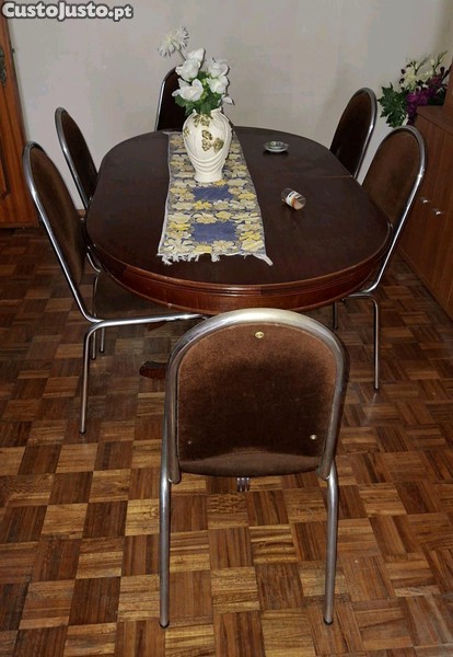Mesa em Madeira e Cadeiras em Ferro