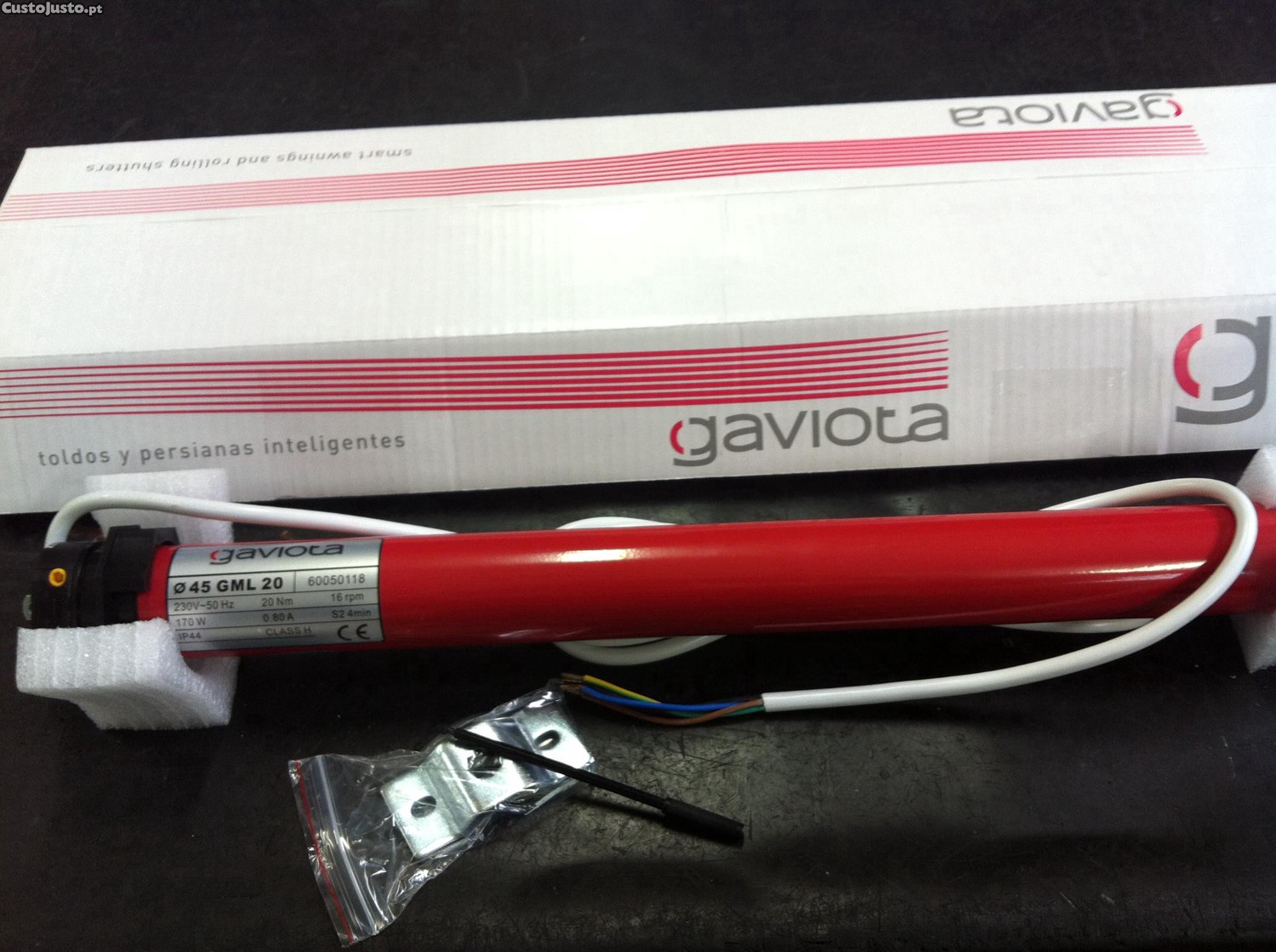 Motor elétrico para persianas inteligentes da marca Gaviota. Ideal para automatizar o funcionamento das suas persianas de forma prática e eficiente. Produto novo e de alta qualidade.