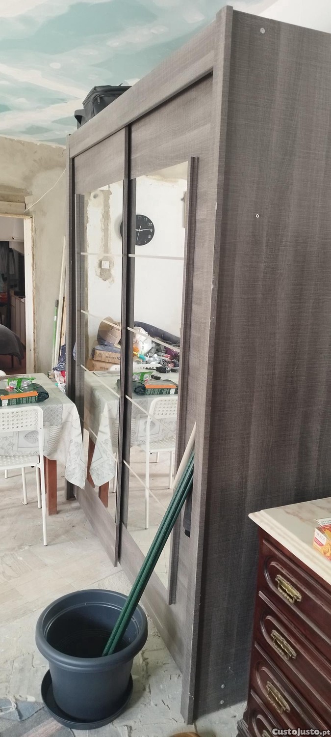 Móvel bastante espaço com algumas prateleiras e 2 varões para pendurar roupa e 2 espelhos grandes.