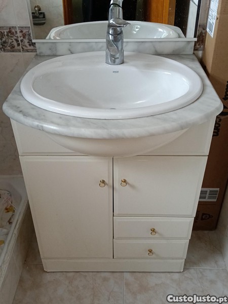 Móvel de casa banho, com tampo em mármore natural polido, com bacia