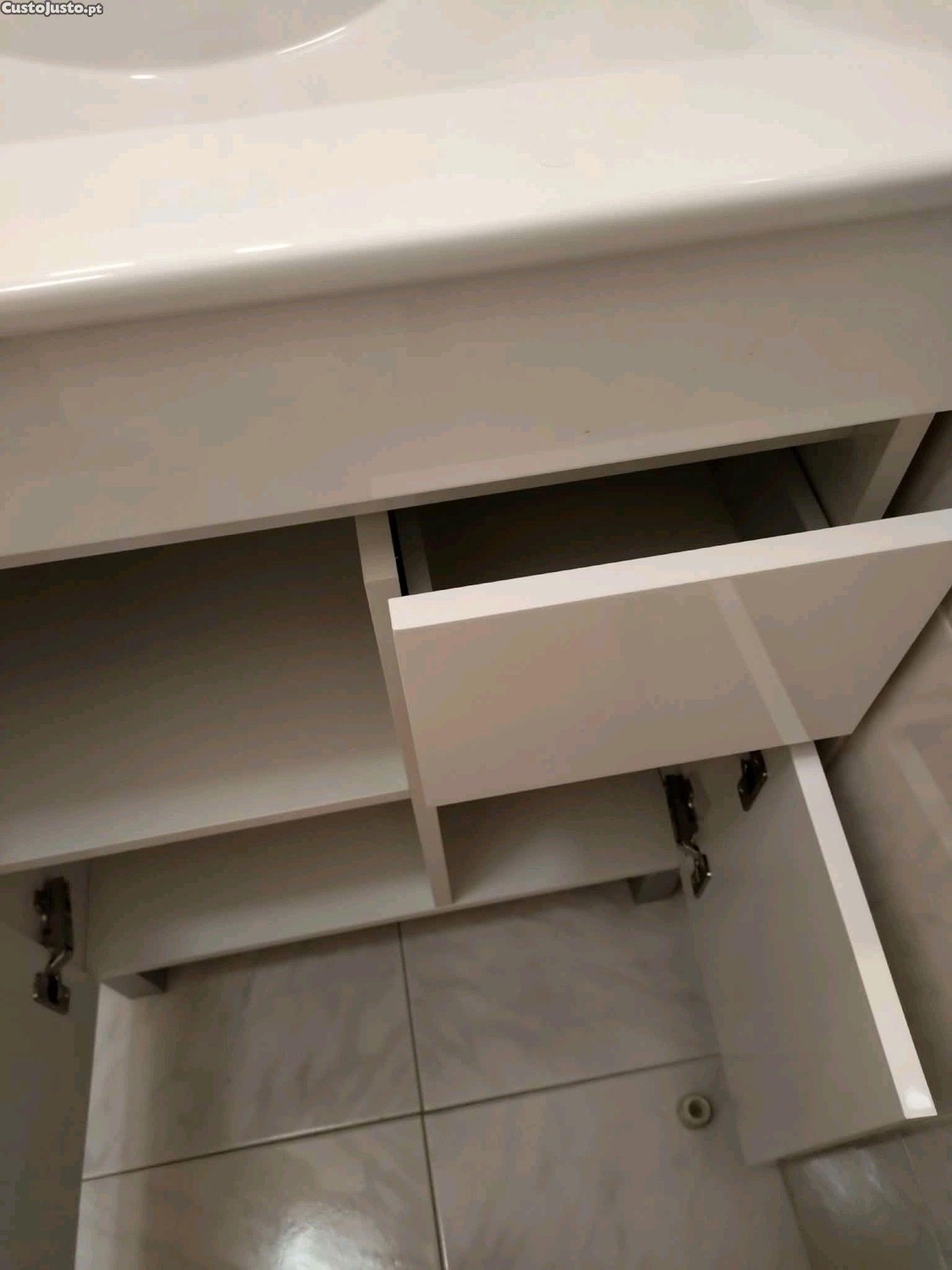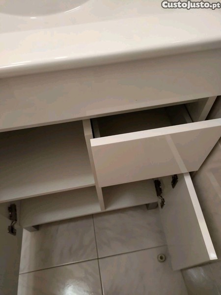 Móvel wc moderno e elegante, com lavatório embutido e gavetas para arrumação. Ideal para complementar o seu espaço de banho com um toque de sofisticação.Não inclui a torneira está como novo comprado á menos de um mês motivo da venda ocupa muito espaço na casa de banho. Medidas Altura 82cm Largura 61cm Profundidade 48cm Valor negociável. O móvel wc encontra-se localidade Cruz de Pau Amora