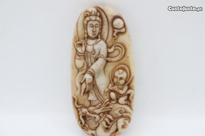 Pedra / Placa Oriental em Jade Figuras e Dragão, muito original