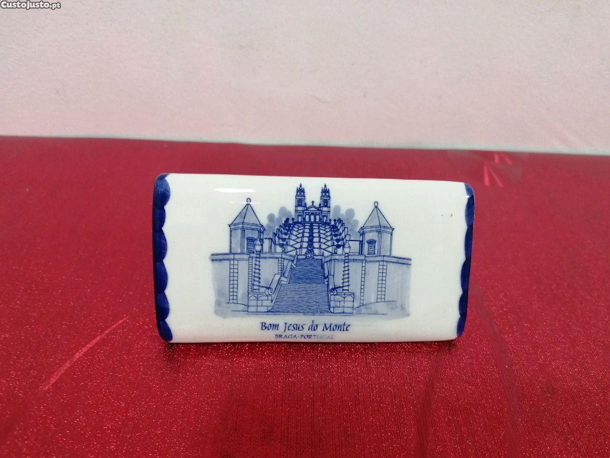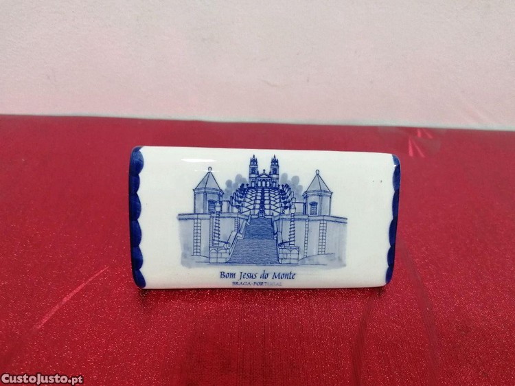 Paliteiro em porcelana com a imagem da escadaria barroca e da igreja Bom Jesus do Monte