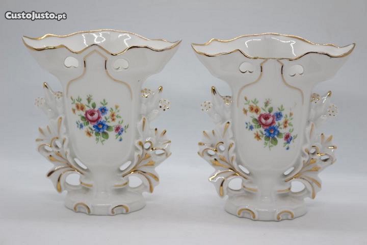 Jarras de Altar Vista alegre em porcelana moldada e relevada decoração floral policroma e ouro 1947