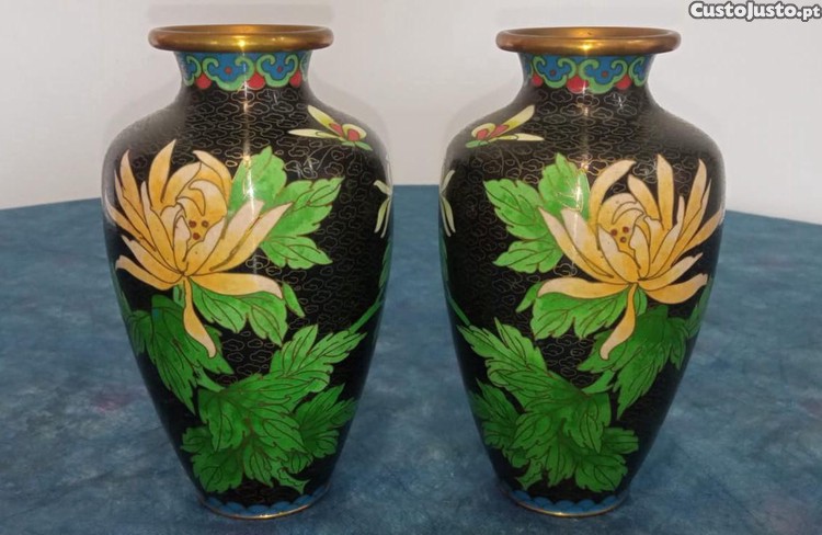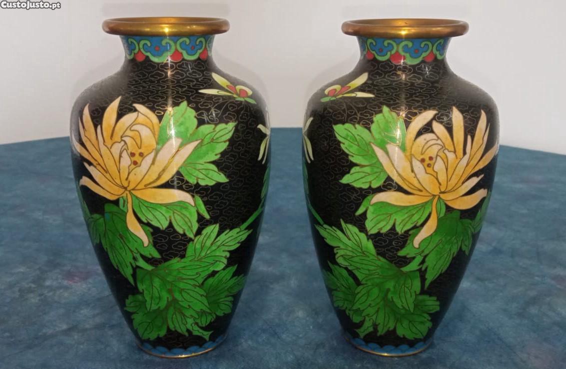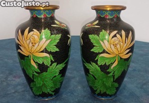 Vendo par de vasos em Cloisonné (esmalte vítreo sobre metal) de alta qualidade, uma das artes decorativas mais nobres e tradicionais da China.