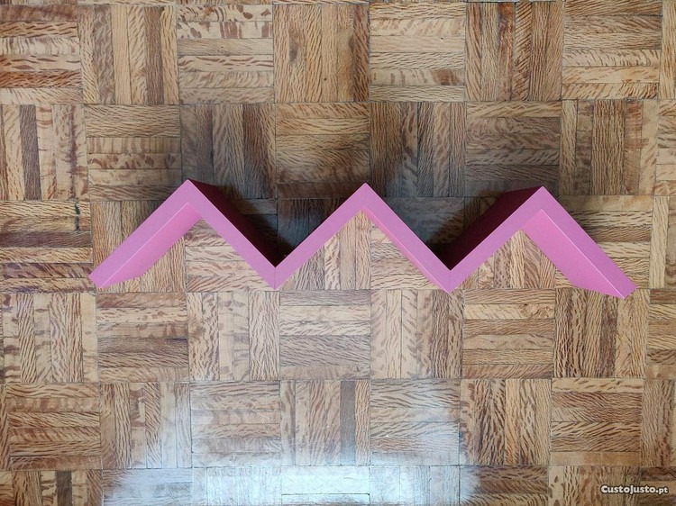 Prateleira em ziguezague em MDF revestida a PVC cor rosa. Apesar de usada, encontra em bom estado. Entrego em mãos no Saldanha.