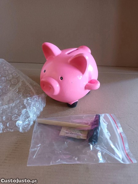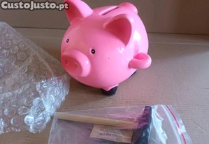 Porquinho mealheiro com martelo da famosa marca Flying Tiger. Dê um toque divertido à poupança usando este mealheiro cor-de-rosa com martelo, perfeito para guardar moedas. Concebido numa forma clássica de porco com uma superfície lisa, confere charme a qualquer prateleira ou mesa de cabeceira, mantendo os trocos guardados em segurança. Quando chegar a altura de o abrir, basta utilizar o martelo incluído para o fazer de forma divertida e satisfatória. Fabricado em cerâmica mede 11 cm x 10 cm x 12 cm e é uma peça alegre muito decorativa. Está novo, nunca foi usado e encontram-se ainda na caixa original. Barato para desocupar. Negociável, vendo pela melhor oferta. Possibilidade de vir buscar em mão.