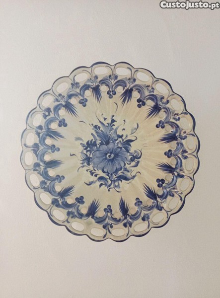 Prato em faiança em tons de azul sobre branco da antiga fábrica Salústio da região de Alcobaça.