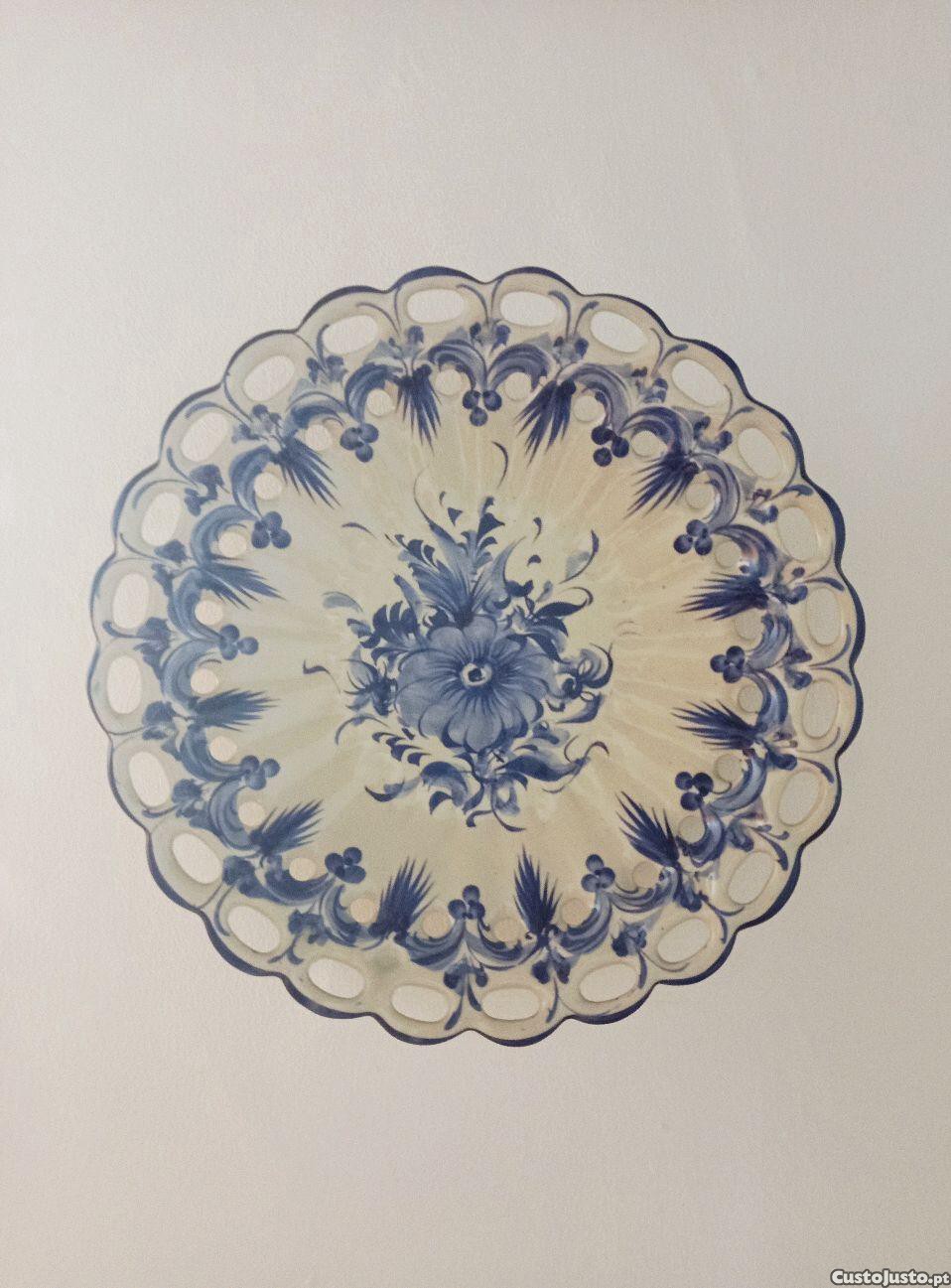 Prato em faiança em tons de azul sobre branco da antiga fábrica Salústio da região de Alcobaça