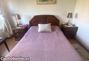 Vendo cama de casal em madeira + 2 mesas de cabeceira a combinar, em muito bom estado geral.