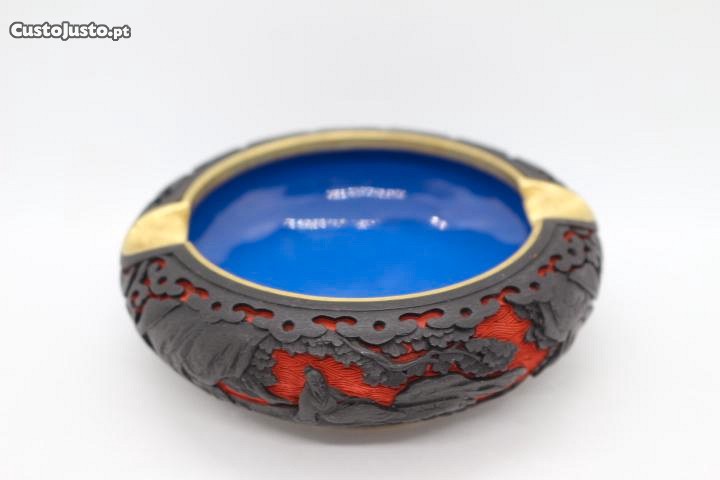 Preço: 80 €Raro Cinzeiro Laca Cinnabar Chinesa Figuras XIX