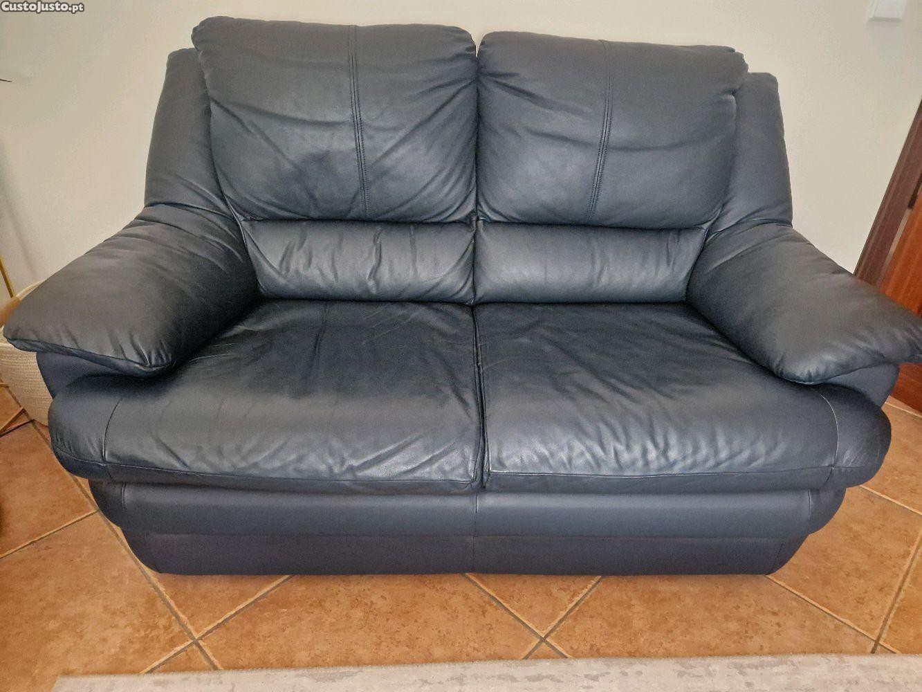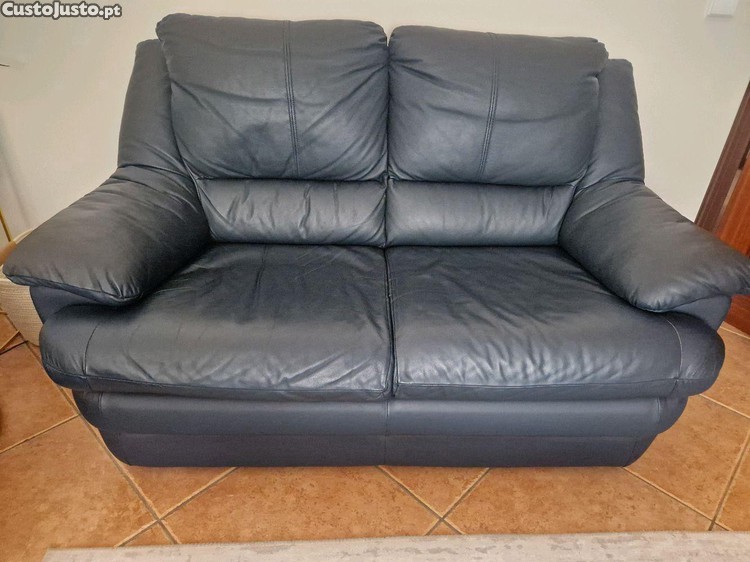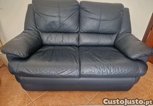 Sofá em pele azul escuro de 2 lugares em estado impecável