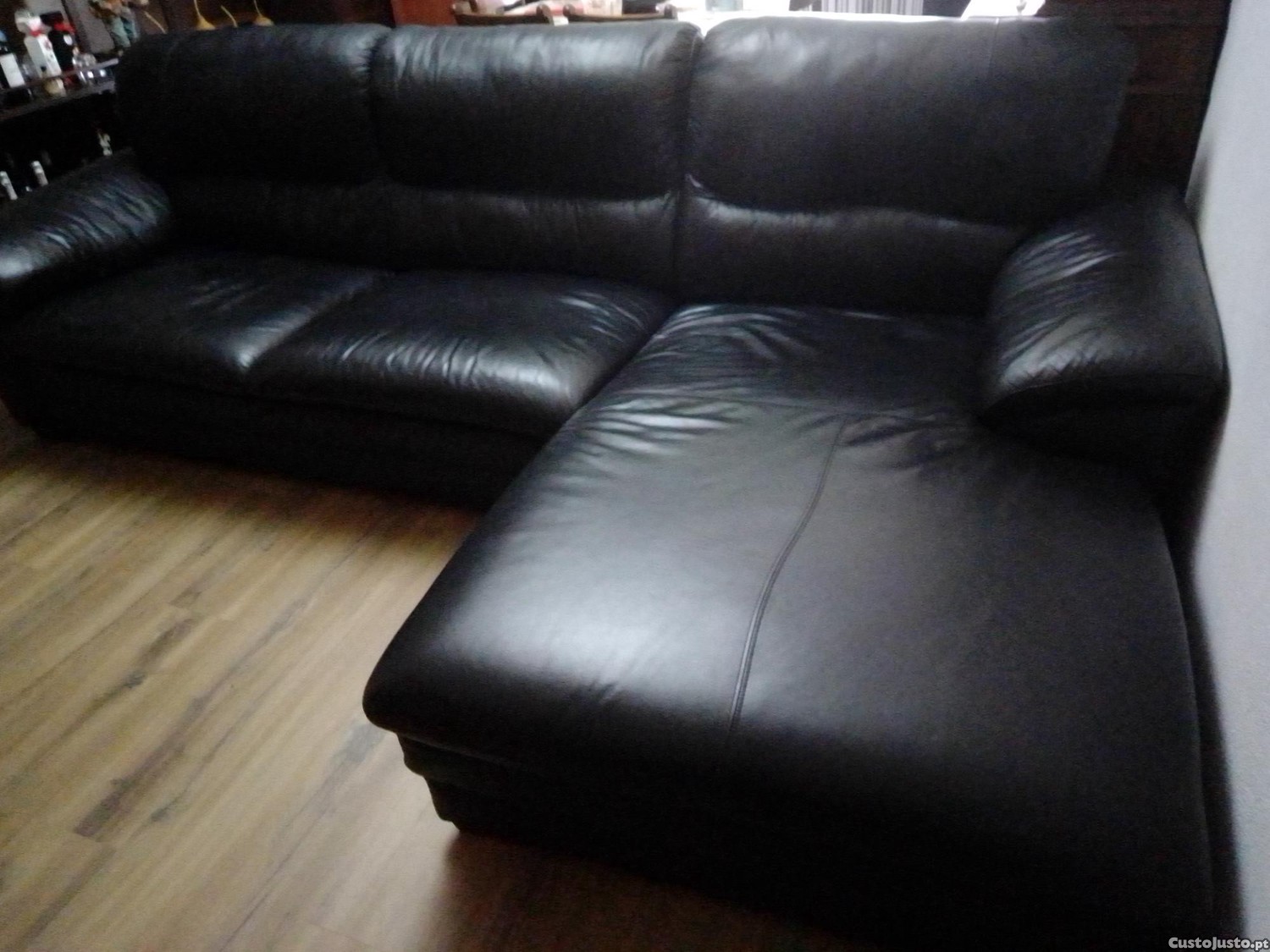 Preço: 500 €Sofá em pele para 5 pessoas, em preto. Sofá de canto esquerdo.