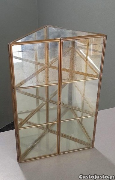 Vitrine Triangular, estrutura em latão, A36 x L24 x P13cm, muito estimada: