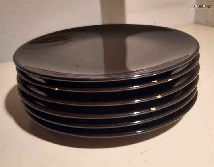 Preço: 5 €6 Pratos Sobremesa Grés Vidrado Preto IKEA Dinera