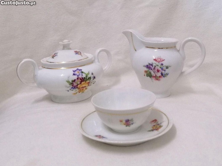Preço: 60 €Açucareiro, leiteira e 9 chávenas e Pires Chá - vista alegre antigo