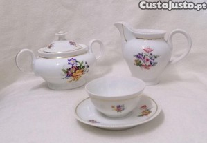Açucareiro, leiteira e 9 chávenas e Pires Chá - vista alegre antigo